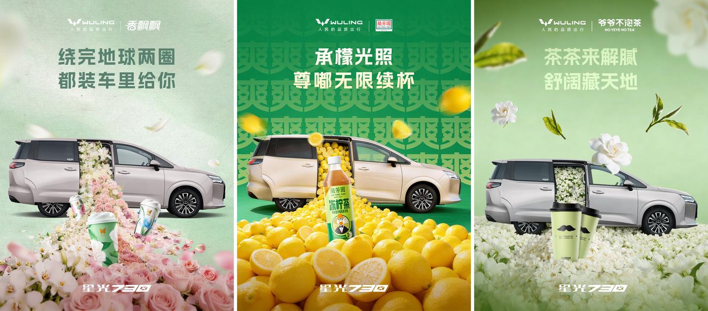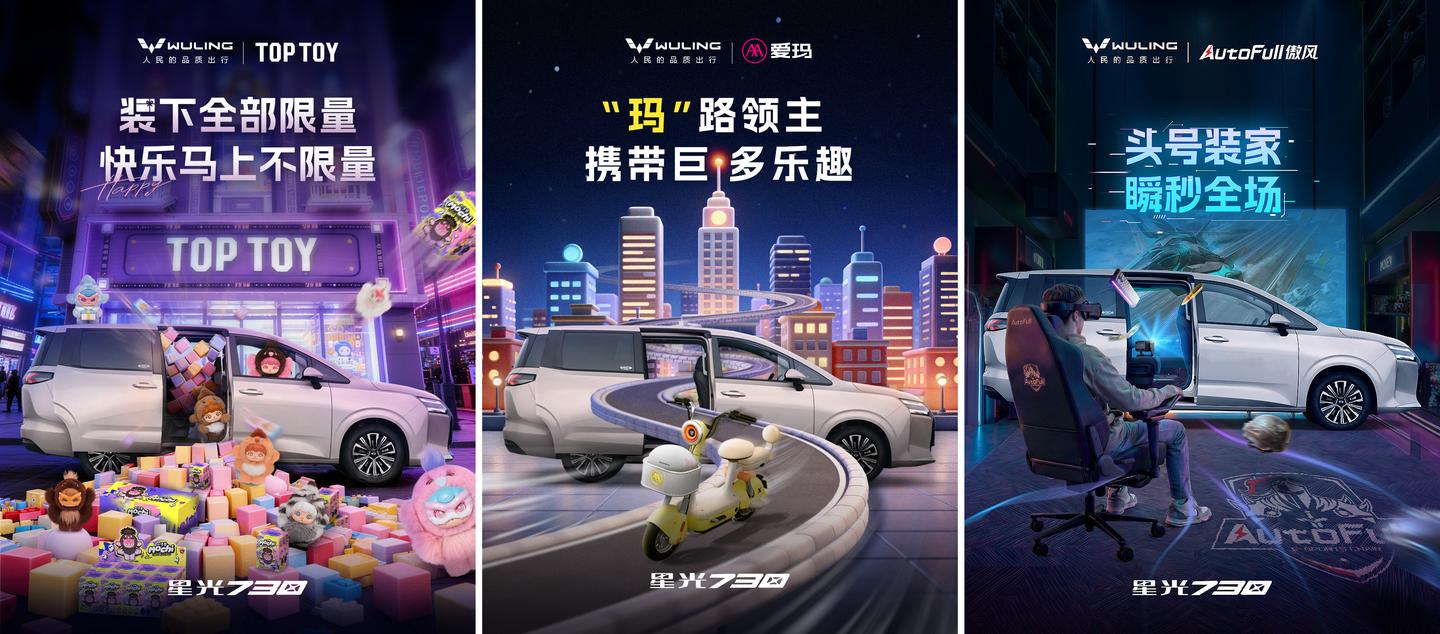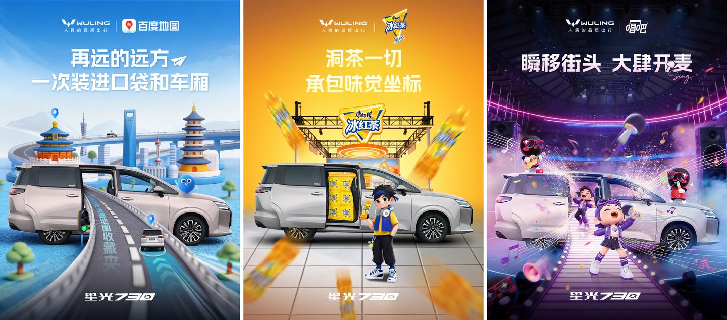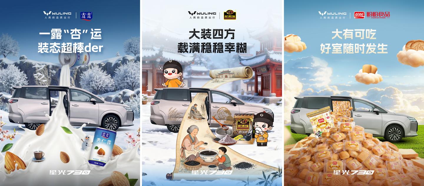 视觉层面,以星光730侧滑门为创意核心,为每家品牌设计专属联动海报,将品牌主打产品/IP与车型趣味融合,既体现五菱产品特色,又保留各品牌视觉辨识度。文案层面,深度贴合联动品牌调性、核心产品与出圈热点,打造自带传播力的趣味文案,如卫龙的“解馋上不封顶 卫你永不断货”、中国邮政的“叮咚!您有一封来自国民的欧气快递,请锦鲤本人签收”等,紧扣“装载”主题,充满趣味性与互动性。