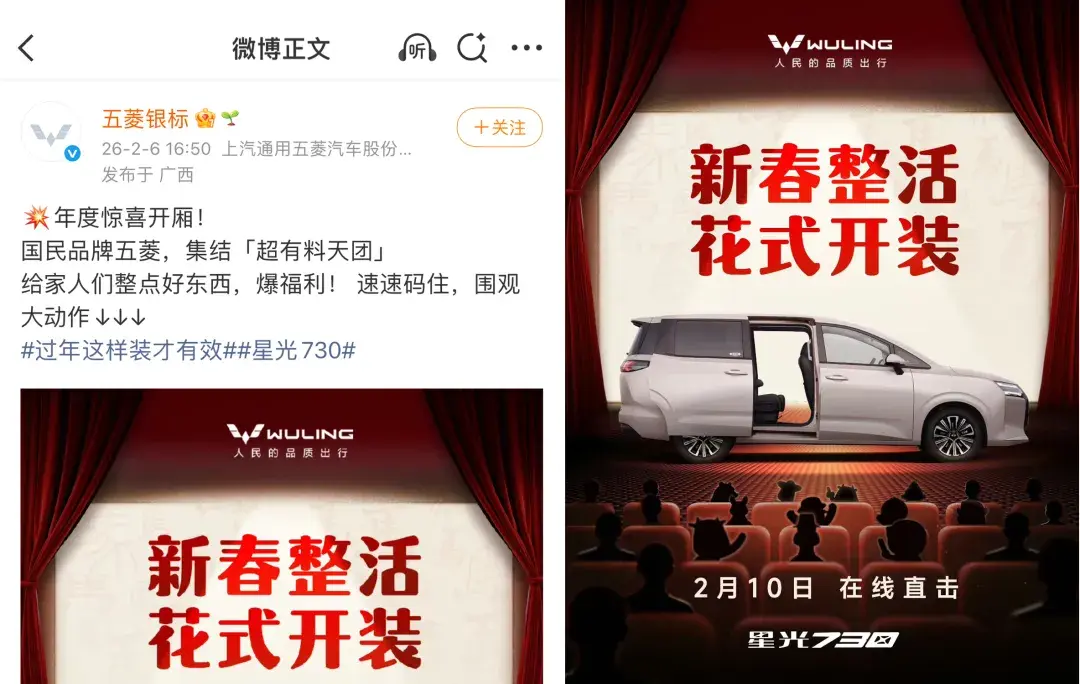 场景契合是营销的基础,品牌需精准捕捉节日场景与产品特性的结合点,将产品卖点融入用户的真实生活场景中,解决用户的实际痛点。五菱正是抓住了春节 “装载难” 的痛点与星光730 “大空间” 优势的契合点,让产品传播不再生硬,而是真正贴近用户需求,引发用户关注。