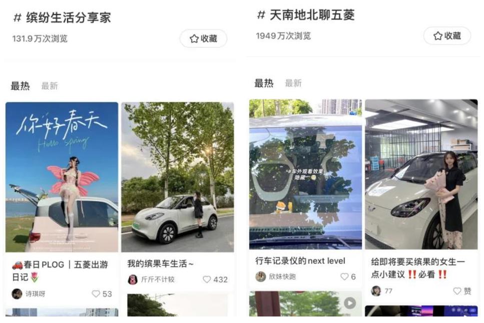 为了让潜在用户能够快速找到品牌相关内容,五菱全方位拓宽品牌及各车型关键词的传播覆盖面,通过策略性的 SEO 优化和关键词布局,确保品牌相关的搜索声量占据行业领先地位。在小红书平台,围绕 “五菱”“五菱缤果”“菱感派对” 等核心关键词,积累了大量优质笔记,当用户搜索相关关键词时,能够第一时间接触到正面、真实的品牌信息,从而稳固和提升产品的市场口碑。