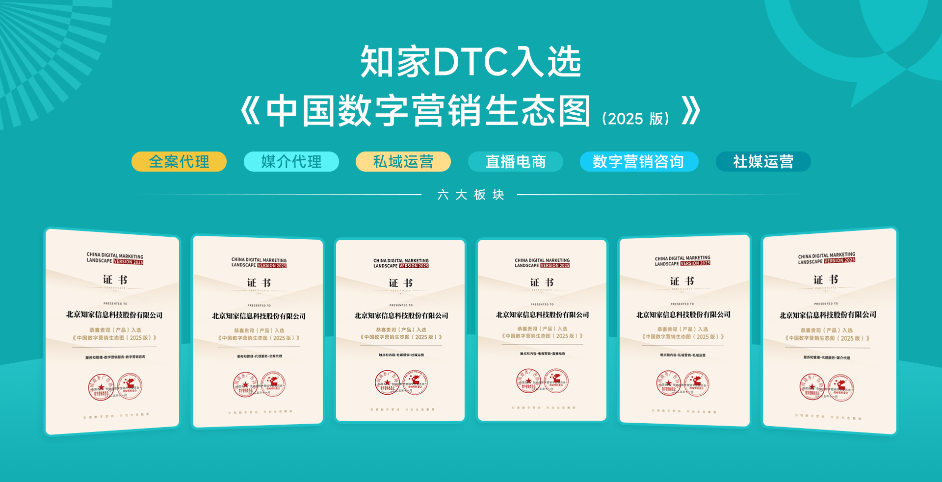 此次在《中国数字营销生态图(2025版)》六大板块的全面入选,对知家DTC而言,既是荣誉,更是责任。作为DTC营销服务领域的实践者与推动者,知家DTC始终赋能品牌实现可持续增长与业绩提升,持续深化“营销+方法论+经验”的服务价值链,不断提升专业能力与创新水平。