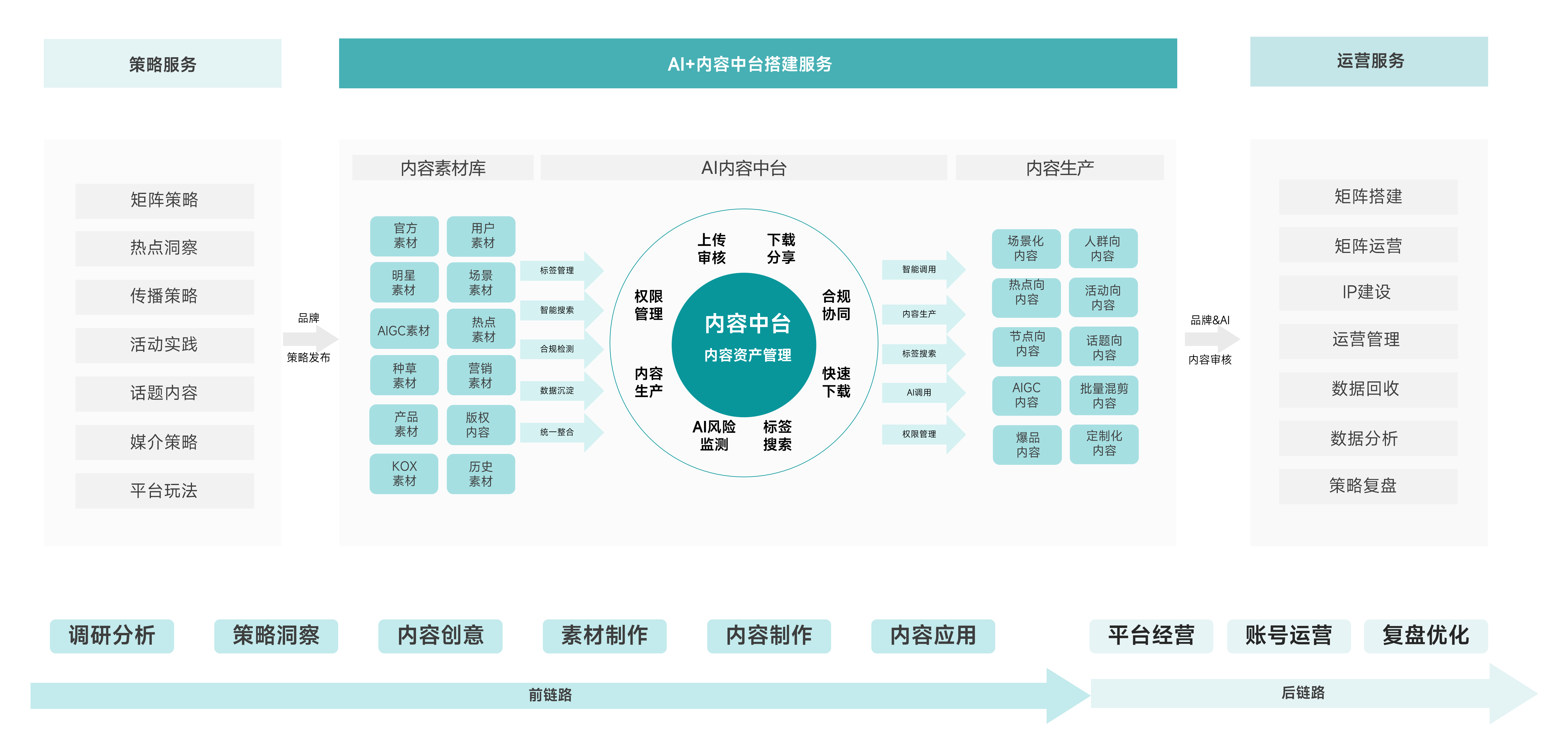 ● 全案代理:具备从市场洞察、品牌策略规划、内容创作、媒介投放到效果追踪的全链路整合服务能力,为品牌提供系统化、定制化的增长路径,助力实现品牌声量与商业业绩的双重提升。