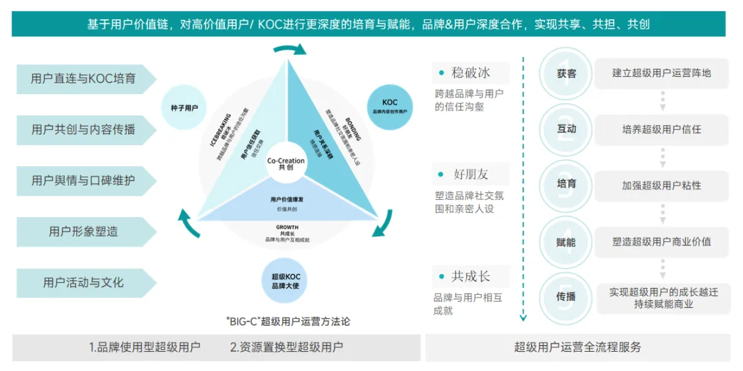 ● 私域运营:针对流量成本高企的市场现状,创新提出“超级用户运营”体系,通过“招募—激活—培育—转化—复购”的全周期运营,帮助品牌构建高黏性、高价值的私域用户池,显著提升用户留存与生命周期价值,打造品牌增长的稳定内核。